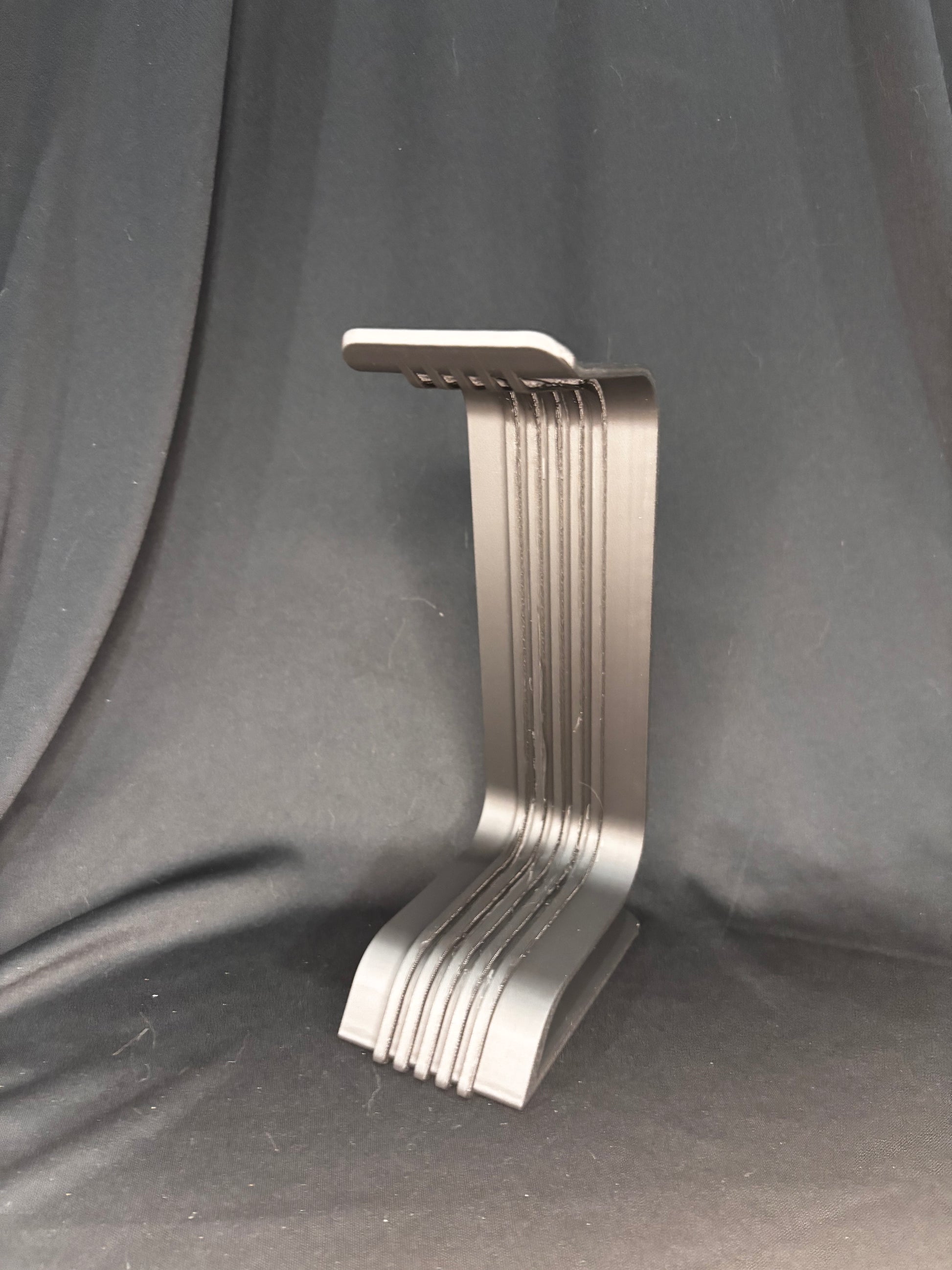 Keep your headphones looking sharp and ready for action with this sleek black stand. Designed to showcase your audio gear while keeping it safely elevated and within arm's reach, it's the perfect desktop companion for music lovers and gamers alike. The minimalist aesthetic complements any setup, from gaming rigs to creative workspaces. Say goodbye to tangled cables and hello to organized style! Item approximately 11" tall. Headphones NOT included.