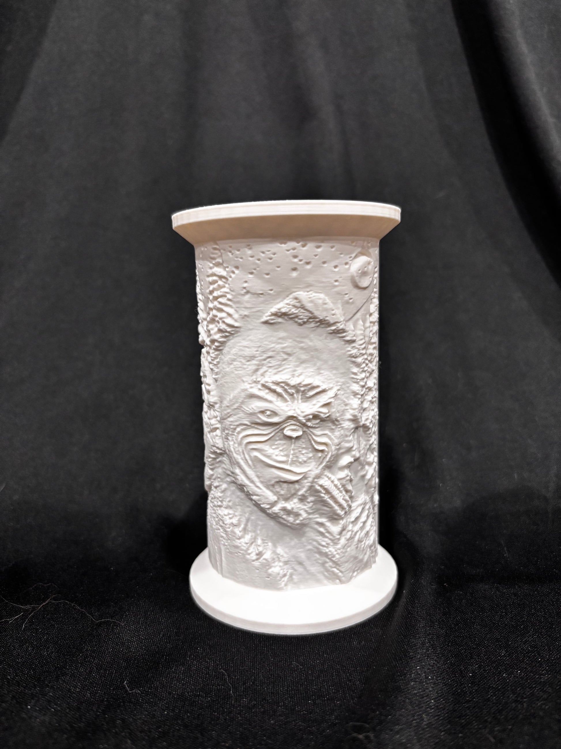 Bring a mischievous glow to your holiday décor with this charming Grinch Litho Tea Light. Watch as warm light dances behind the iconic character's sneaky smile, creating a delightfully festive ambiance. Perfect for adding a playful twist to your seasonal display, this piece captures the Grinch's cheeky spirit while casting a cozy, inviting glow. Whether you're a devoted fan or just love holiday humor, this tea light combines art and atmosphere for maximum yuletide mischief. Product measures 6" tall and 2.5" wide. *Includes the warm colored tea light.
