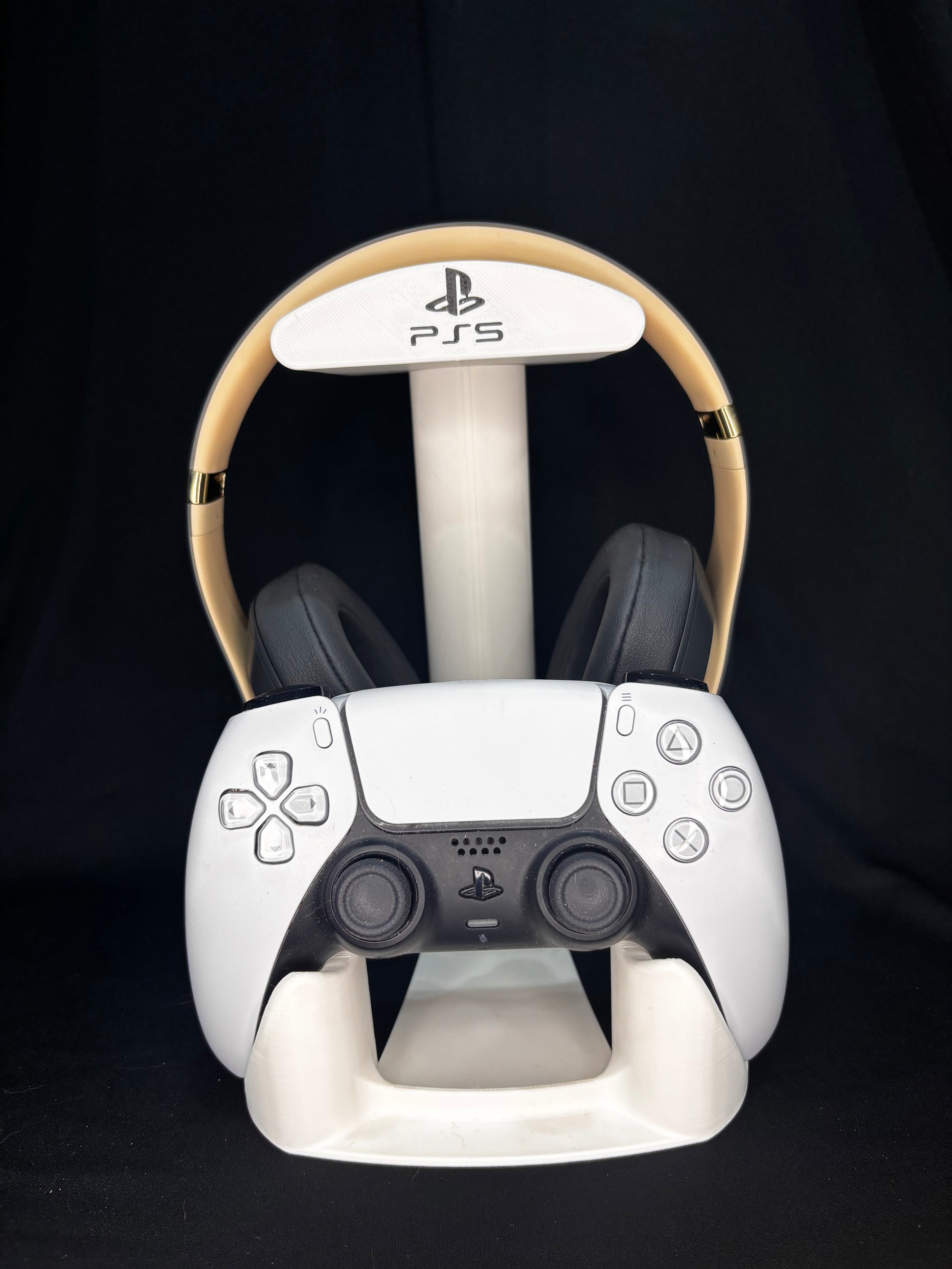 Keep your gaming setup organized and stylish with this sleek PS5 Headphone and Controller Stand. Designed to hold your headphones and controllers when you're not in the action, this dual-purpose stand keeps your gear within arm's reach and off your desk. Available in crisp white and bold black, it matches any gaming setup while protecting your equipment from damage. The sturdy base ensures stability, so your accessories stay put during intense gaming sessions. Level up your space with a stand that's as ready for gaming as you are! Headphones NOT included. item stands approximately 12" tall.