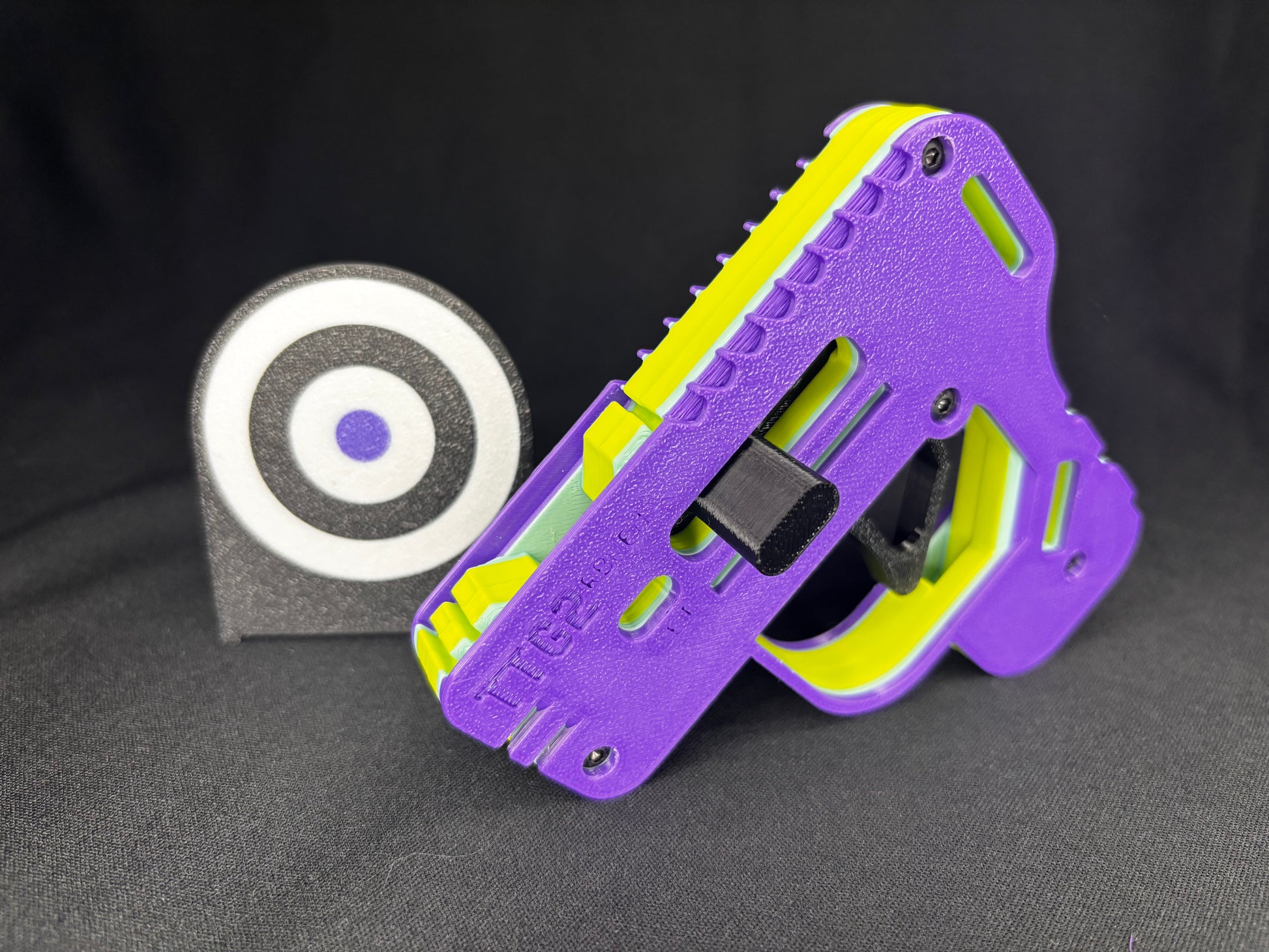 Blast into action with the Tic Tac Blaster in purple/blue/lime green. This playful toy delivers fast-paced fun as you aim and fire at targets with precision. Perfect for kids and adults who love interactive games and exciting challenges, it combines skill-building gameplay with endless entertainment. Watch targets light up and react as you master your blasting technique. Ideal for solo play or friendly competitions, the Tic Tac Blaster keeps the excitement going strong! This listing is for the purple/blue/lime green blaster and purple target.